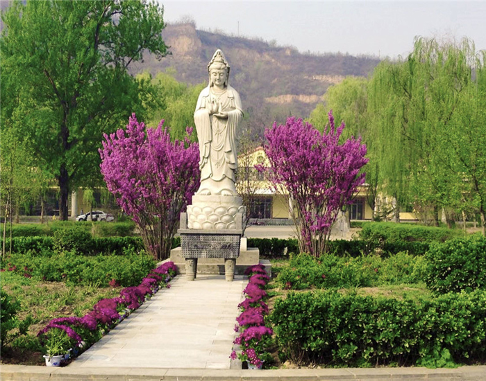 邙山逶迤起伏,三面环抱陵园,气势磅礴,山下金水河水长流不息,绕流仙境陵园,有“玉带缠绕”吉祥征兆。仙境陵园的自然景观形成“左青龙,右白虎”“前有照,后有靠”之地,是海内外一流风水大师公认的风水宝地。山上的大佛面东背西,神态庄严,栩栩如生,俯视园区,佛光普照,超度众生,越发增添陵园神圣、绮丽的风姿。来到这人生后花园,如进入人间仙境、世外桃园,到处绿树成荫,花草繁茂,松柏青翠,鸟语花香,景象万千。